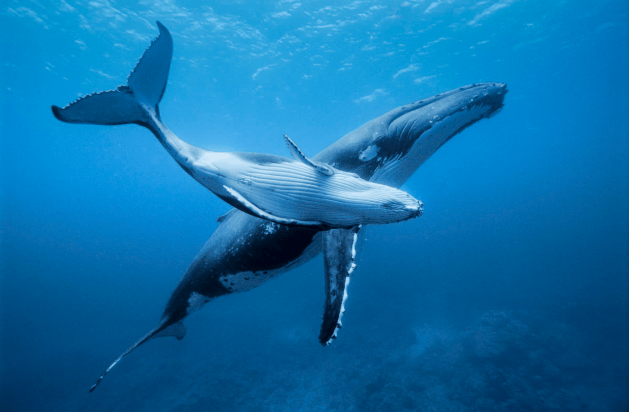 A young humpback whale with its mother near the island of Rurutu in French Polynesia. Alexis Rosenfeld / Getty Images