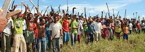 …..Women members of the Movimento Sem  Terra.. (Landless Movement), have staged frequent emonstrations and forest occupations.