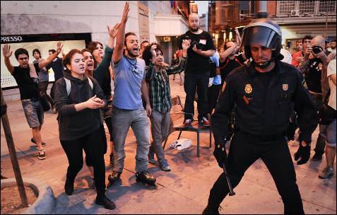 Barcelona…acampada indefinida a Plç Catalunya contra el govern,la patronal i els bancs. per una vida digna, pel repartiment de la riquesa! permanent camp vs. gov., bosses, banks.. for a life worth living and sharing wealth