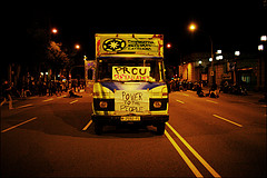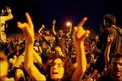 The now decentralised Take The Streets movement blocked all access to the city park where the Parliament is due to debete the social cuts ordered by central gov. and the IMF.