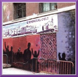 Peering over we could see out the front, busy Little Agnes Street. An old woman was waving her walking stick as she passed. Then yunkers with files, on a De–School project, yellow head scarves flying, with Clan Earth clothes, cool cut-offs and shredded denims. A cleanairbus was hooting to get through, bicycles came wobbling in the breeze. Now a gang of smaller kids, all holding hands.