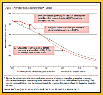 The title of the PWC report is sobering, “Too late for two degrees?” So is its main conclusion: