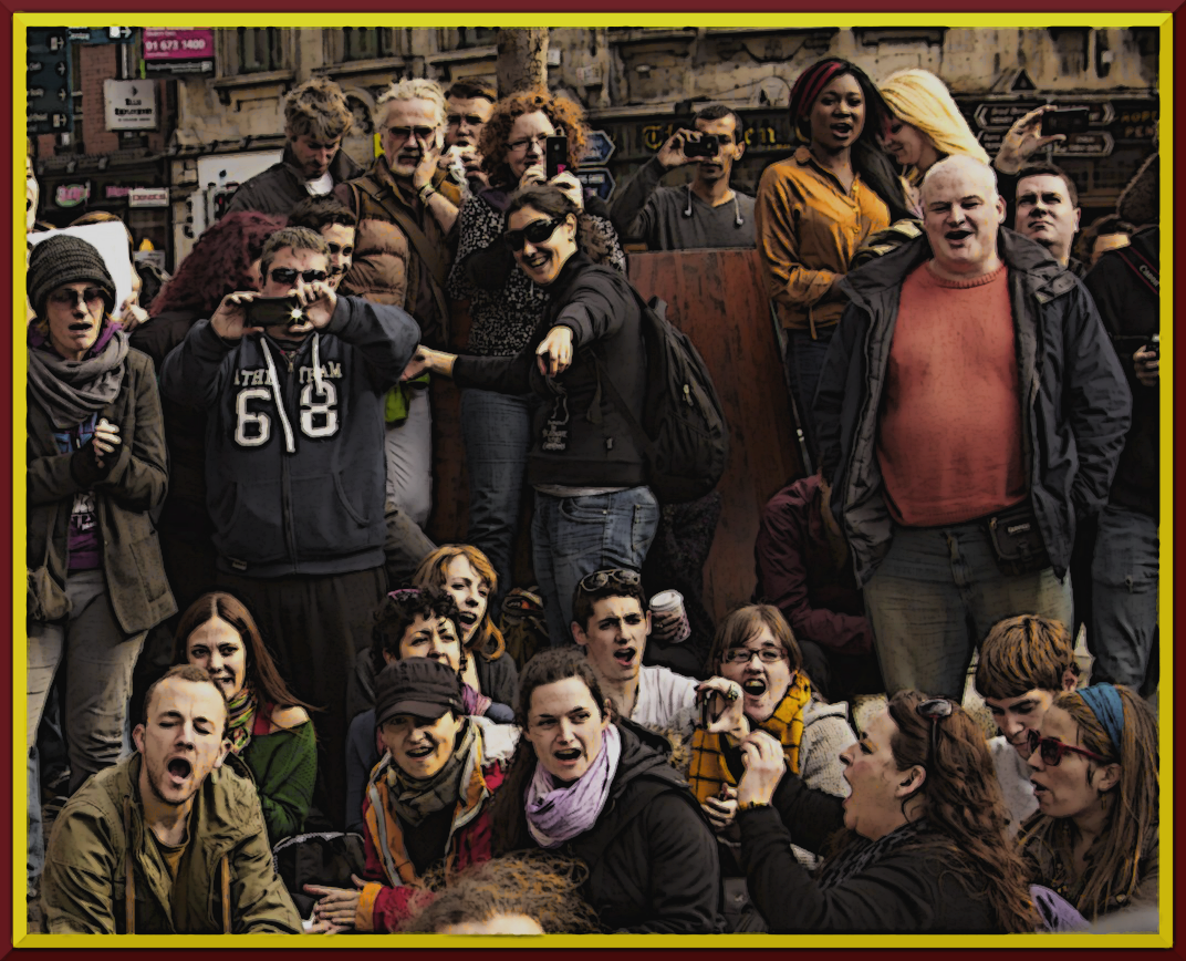 Young fresh faces and faces lined and balding. some contending with wobbly bellies.  Others old already, with alcohol and frustration, plus a bit of hard labour as well.