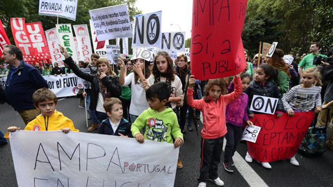 They are also angered by a planned education reform, which sets new grading systems, allows for larger class sizes and boosts the proportion of Spanish-language classes at the expense of regional languages.
