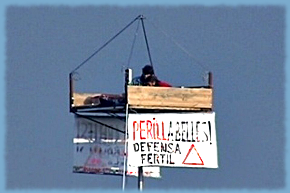 At six a.m. began by surprise the eviction of the country squat center Can Piella in Montcada i Reixac, but the lookouts were awake.. The people who resisted being distributed in many parts of the estate. There were people chained in the woods surrounding the house and a sophisticated device about eighteen meters from the ground, tied with turnbuckles, above the roof of the house. Can Masdéu from the Debt Observatory Globalization or neighborhood organizations Montcada i Reixac have rallied to support the resistance. The farmers involved in the collective self managed project opened holes in paths that the riot police had now filled with earth using an excavator, to pass by with their vans and cranes. On the whole the operation was attended by more than 20 riot vans.