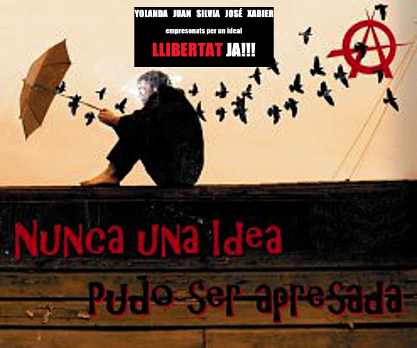 | Si que s’hi assembla a l’scala, amb la diferència de que al Xavier li fariem un monument i als que s’han vist enmerdats aqui és millor deixarlos tirats no? No ens hi tenim que solidaritzar per gaudir del carnet de superanarco insurrecte, sino perquè son persones i prou, com totes les altres preses. |