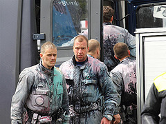 The riot cops found an entrance on the side and climbed a window with a ladder. It was not clear what exactly they did there. But it could be heard. The few who returned, were almost unrecognizable as riot cops: completely covered in paint.