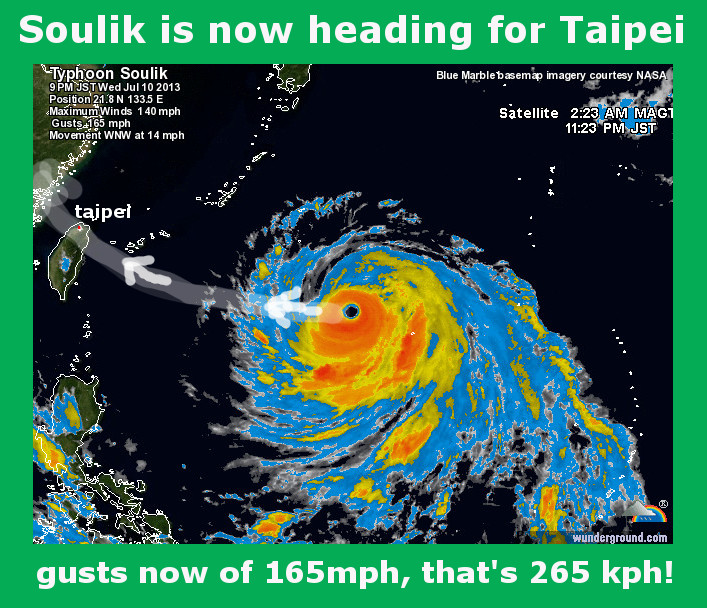 It’s now predicted to slam into the northern tip of Taiwan, that is Taipei, Keelung and Wenshan where over 4 million people live.