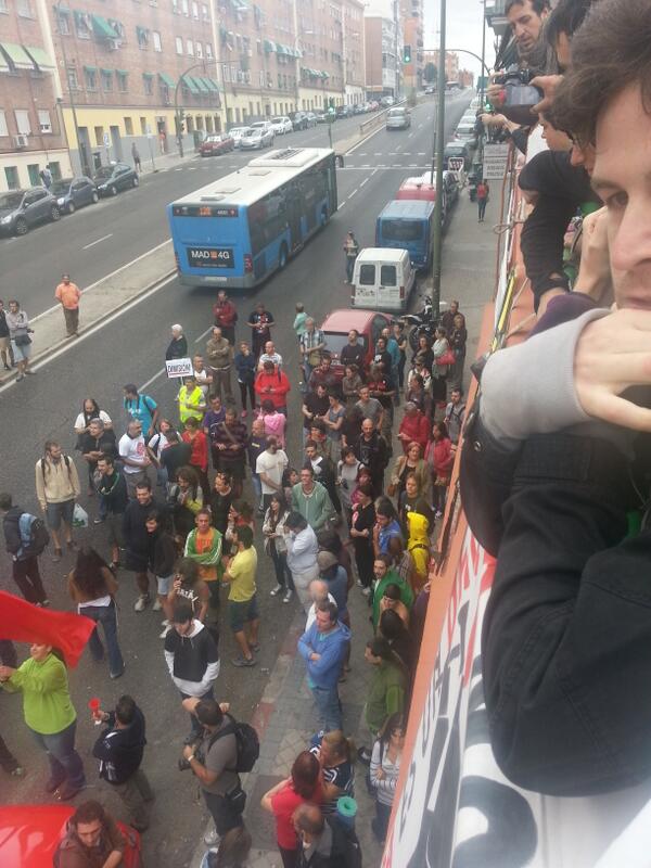 A first effort at eviction occurred in September 2012, with the family resisting. Fearing a repetition, the family turned to the “housing group” of the Popular Assembly of Tetúan, a child of spain’s 15M and other social movements. A line would be drawn around the González’s home, as so many others have been drawn by the PAH and 15M’s city assemblies in their struggle against the savagery of hundreds of daily evictions. As the eviction approached, the house’s inhabitants would be joined by as many as could resist from within, for days. Camping on the terrace, barricaded from within, and with many more outside, on the 14th of August, the occupiers held their own against the riot police. But as the end of this month approaches, the legal calendar limit for the execution of the eviction order, the resistance will have to continue.