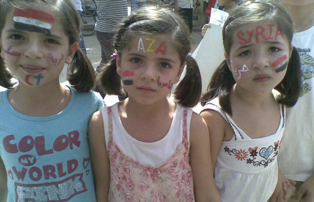 Young girls take part in a demonstration against Syria’s President Bashar al-Assad in Amude - TORY MINISTER ACCUSES SADDAM HUSSEIN OF ATTACK!