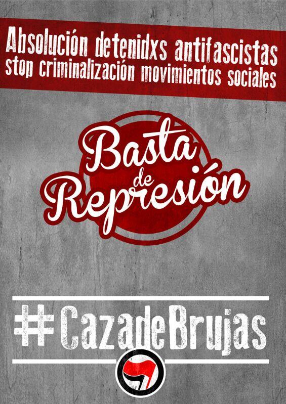 El diario Público ha informado: “Los 17 antifascistas detenidos en la operación policial del jueves por la manifestación en la Universidad Complutense de Madrid el pasado 20- N han quedado en libertad con cargos, tras prestar declaración en la sede de los Juzgados de la Plaza de Castilla.