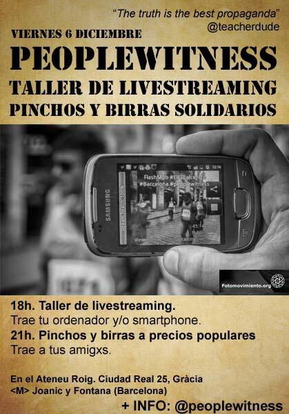 Neighbours and those interested in discovering new keys to work as media activists have a new chance to participate in a PeopleWitness workshop in Barcelona. Members of the Peoplewitness project will held on Friday 6th a free workshop in the Ateneu Roig , at 25, Ciudad Real st. at Gracia district.