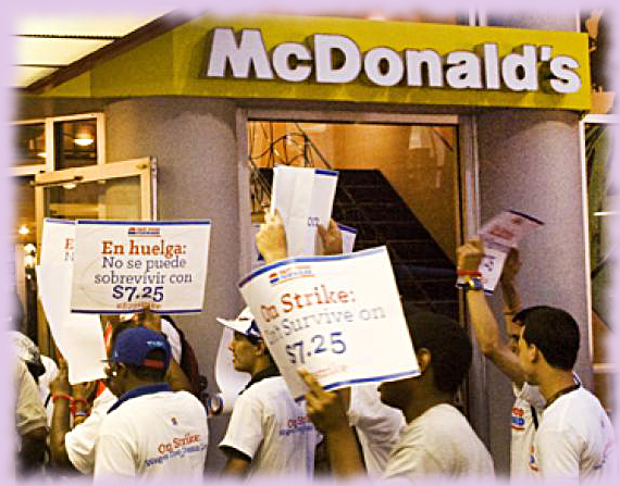 Today, these protesters have joined fast-food employees in an estimated 150 American cities who walked off the job, according to organizers from the two-year-old Fight for 15 campaign. They’re demanding a $15-an-hour minimum wage and the right to form a union without retaliation. And such momentum isn’t limited to the United States. Workers have staged strikes or other actions to demonstrate global solidarity in cities on six continents.
