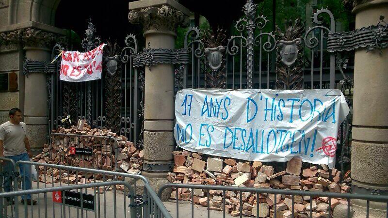 Soon a human chain was organised, half a kilometer long, and we began sending a pile of rubble direct to the local Sants barrio town hall! The bar was opened in the street, food was being prepared, and we heard of support demos happening all over Catalunya, the Peninsula and in Europe.