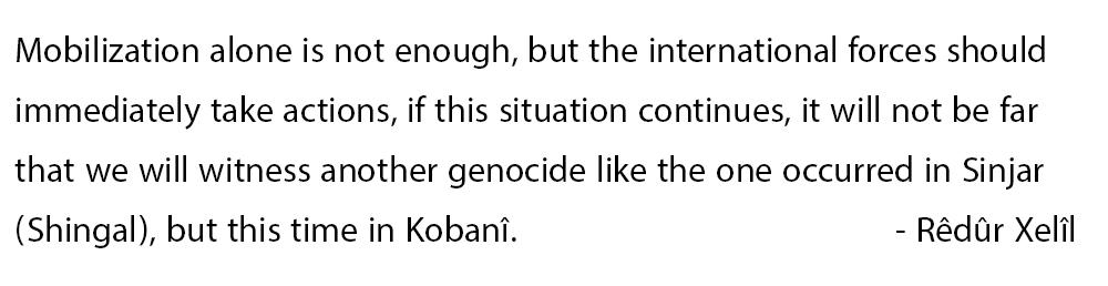 “Miles de jóvenes, socialistas, sindicalistas, revolucionaria, feminista, libertaria llegaron de todas partes de Turquía a Kobanê. Ellas y ellos van allí para apoyar y defender los réfugié.es ciudad.