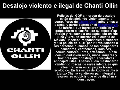 This eviction comes less than a week after the International Festival of Rebellion and Resistance against capitalism, called by EZLN (Zapatista communities) and the Sexta International, of which Chanti are members.