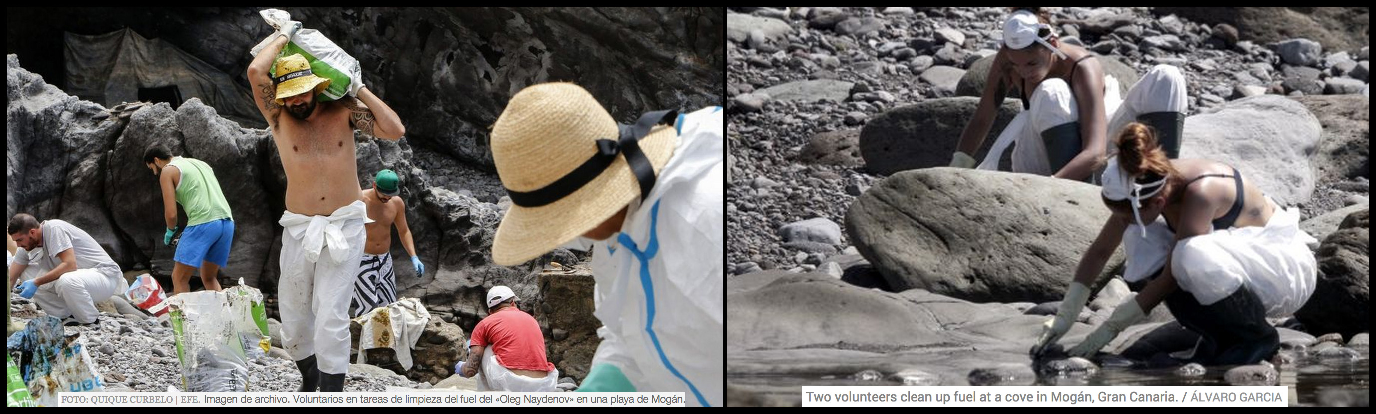 Fuel still seeping out of ship sunk off Canaries two weeks later. “Oil slicks originating from the sunken ship have been reaching the coastline since then, raising fears of environmental damage despite the ongoing efforts of volunteer clean-up crews” ElPais