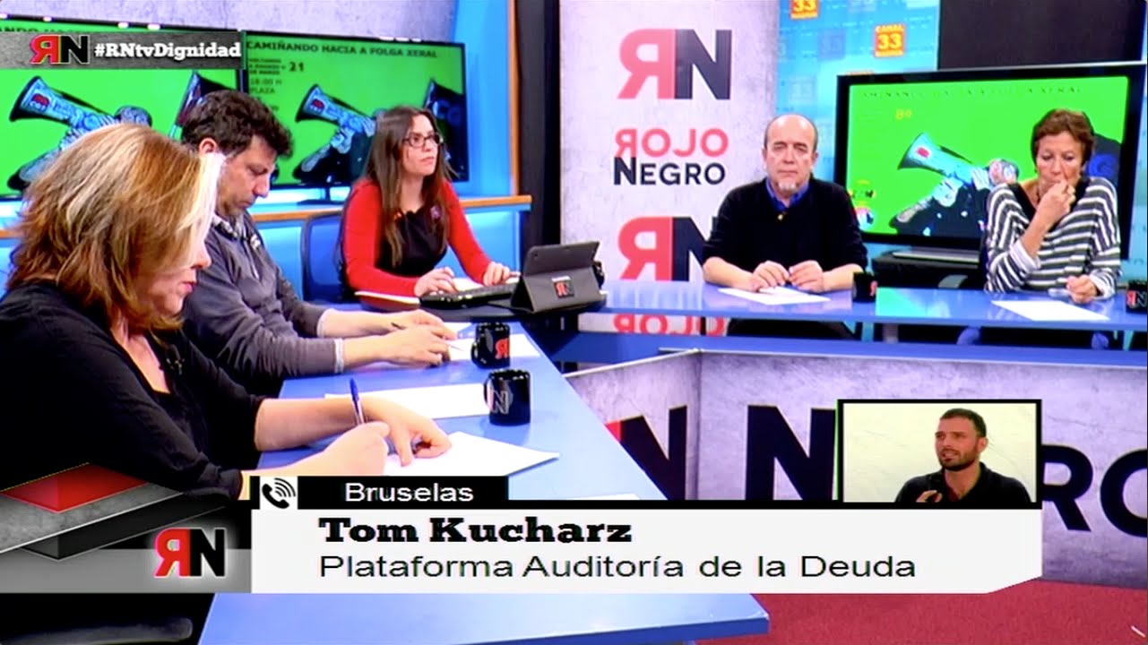 by Jordi Navarro We’re ready.. Everyone knows what to do, when and how. Despite the hustle and stress of the last minutes before the live broadcast, we dont lose our good humor. They are almost fifteen people-more than half women- who since January this year, make RojoyNegroTV (RNTV) possible, every second Tuesday of the month, live on Channel 33, and also streamed from Madrid on the website, rojoynegrotv. org.