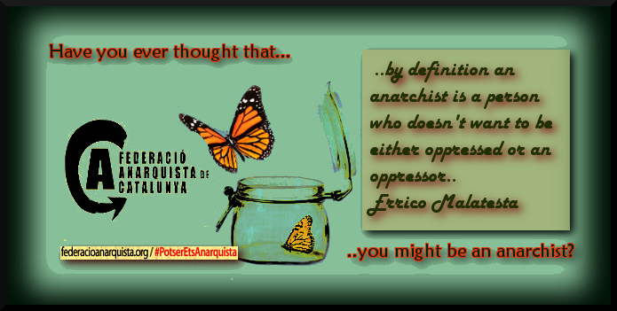 We introduce the public campaign of the Anarchist Federation of Catalonia, launched during these days to complement an earlier effort made under the slogan “Maybe you thought you were an anarchist?”. It is an outreach campaign of libertarian ideas and and the effort to connect with people who are not politicized but who may sympathize with our ideas and methods of struggle. This time it is a matter of presenting a series of struggles that libertarian people are pursuing in different areas…