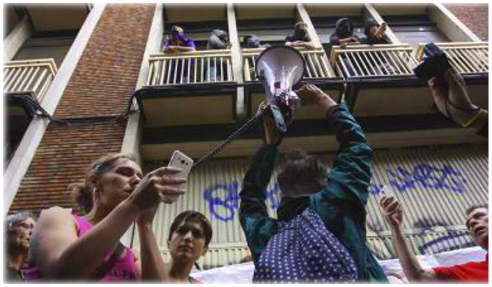 The eviction came just before the extreme reactionary PP have to hand over power in Madrid Council to a left wing ‘citizens coalition’ led by Manuela Carmena, ( of the Ahora Madrid popular movement), and is seen as a revenge attack.