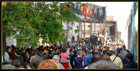 Last year Barcelona City Council decided on frontal attack, enraged that there were growing autonomous communities they didn’t control. Thousands stood in front of the riot police, who finally broke through and the demolition began.Then the unthinkable happened.the community took the streets, and fought the police for 4 days, the demolition was paralyzed.