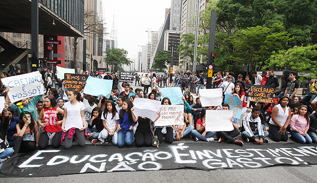 “#OcupaEscola March of the students take the AV. Paulista and follow in the direction of Consolação. #ProtestoSP”