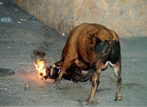 en Castellano abajo On the evening of December 5th I went with a group of activists for the defense of animal rights to the town of Olocau del Rey in Castellon with the intention of preventing an innocent animal being tortured by placing balls of fire on his head, something considered inconceivable outside borders of this country is , as is logical for any civilized mind.