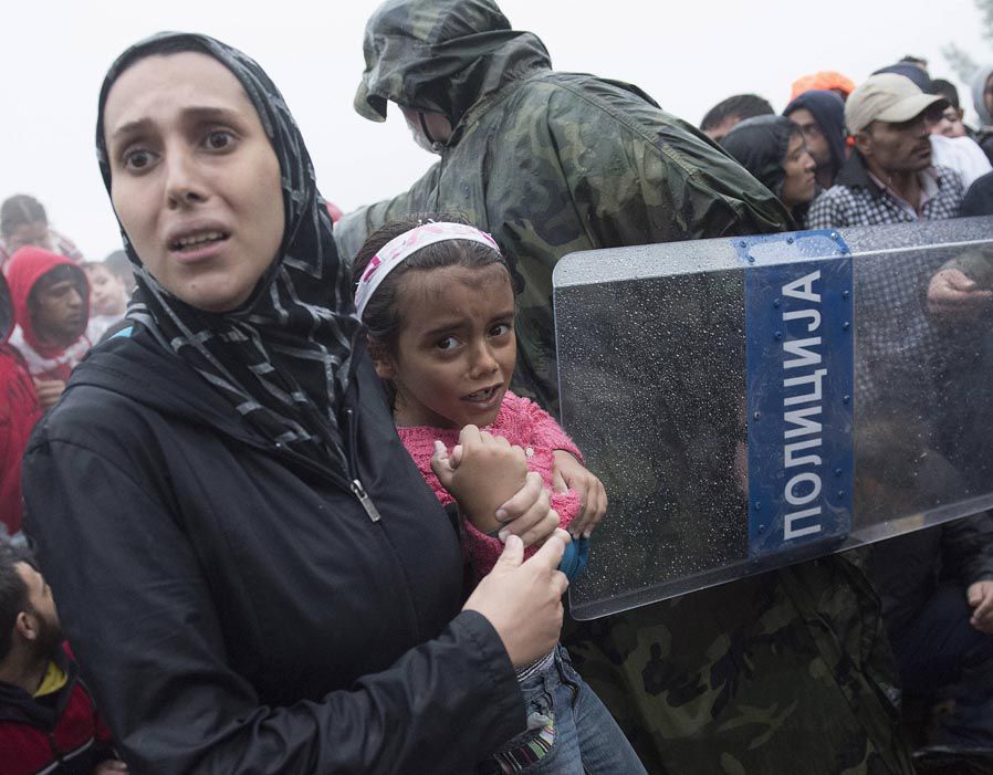 At Idomeni, on the Greek-FYROM (Macedonian) border, the portcullis of iron fences has literally been raised alongside the miles and miles of barbed wire fencing to deter the thousands of refugees now gathered there. Last Monday, FYROM (Macedonian) police fired stun grenades and tear gas at the refugees, including children.