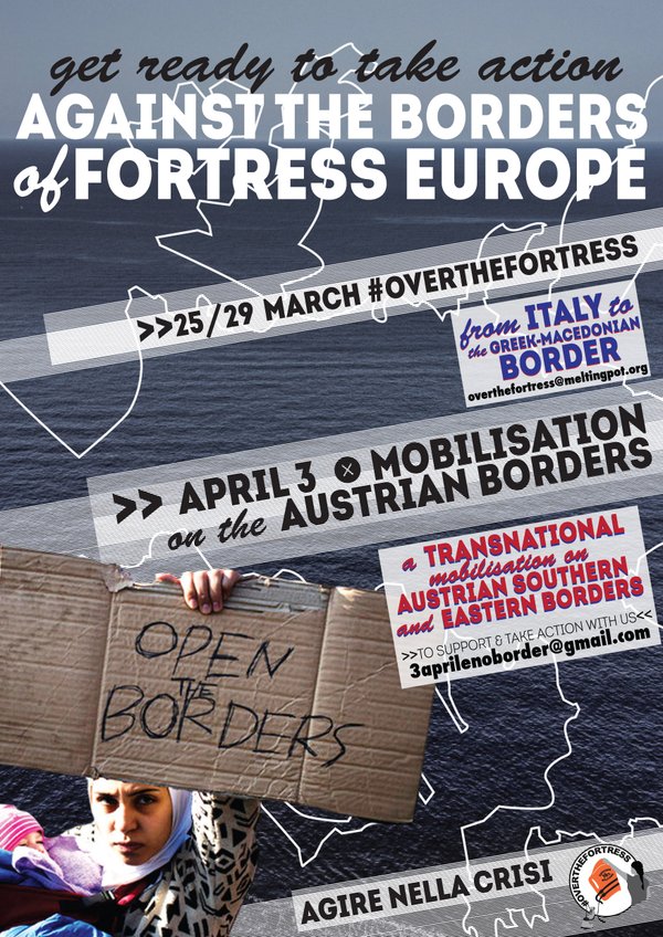 Protesters are planning to cross the Adriatic Sea from Ancona (Italy) to Greece and on to Idomeni, at the Greek-FYROM Macedonian border – their aim is to open the border and provide solidarity to the refugees gathered there – refugees who escaped war zones and crossed the Aegean, only to find that Fortress Europe in the shape of eastern European countries extending from Macedonia to Austria have raised the drawbridge to any further refugees heading north. Another contingent of protesters, with similar aims, will head for the Austrian borders. Details below…