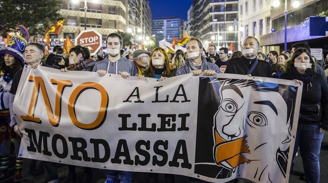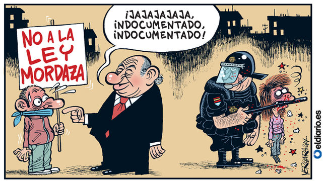 Concentracion contra la ley mordaza by CNT Catalunya 14 Nov 2014 A CONTROVERSIAL new law which could lead to fines of a minimum of 60,000 euros for demonstrators has fallen foul of practically every member of the opposition this week – eight parties proposed amendments to it, but these were all rejected.Known as ‘the Gagging … Continue reading Gagging Spain: desperate corrupt pathetic politicians