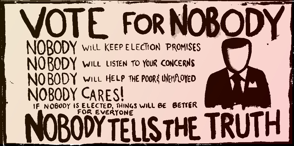 More frequently, we are terrorized into focusing on the electoral spectacle by the prospect of being ruled by the worst possible candidates. “What if he gets into power?” To think that things could geteven worse!