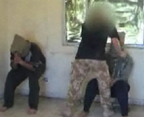 British soldier interrogating Iraqi prisoners at the Shaibah Logistics Base
