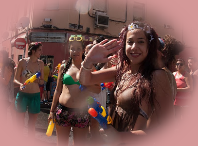 .This year, the wettest party invited Vallecas to ‘jump in the deep end’ against gender violence. The annual water battle this year toured the neighbouthood, visiting one of the apartment blocks occupied (‘liberated’) by the Platform of People Affected by Mortgage evictions (PAH) of Vallekas.