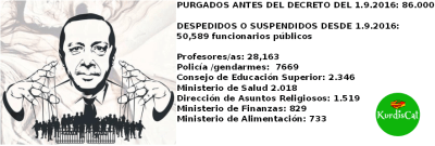 Hasta cuarenta persona permanecen secuestradas tras ejercer su derecho básico de manifestación tras la decisión arbitraria de ayer. 11.285 maestr@s fueron despedid@s de sus puestos por estar sindicados o, simplemente, ser kurdos.