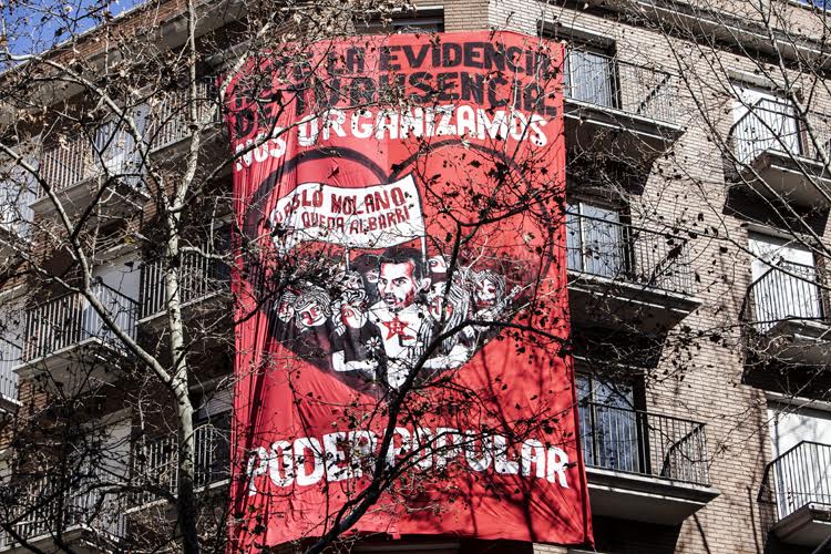 On the façade of the building for weeks we could see a red banner with the silhouette of a big heart and a picture of Pablo Molano, a young man who was at the epicenter of social struggles Barcelona during demonstrations against Bologna in the 15-M and in the three general strikes of the current decade.
