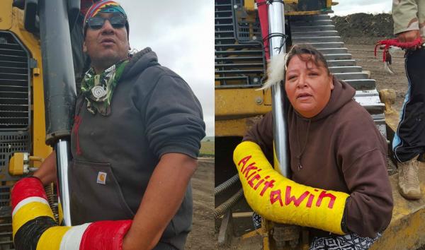 Both of the Women Warriors that locked down at midnight are facing $5000 dollar bail and multiple charges including a Class D Felony charge. If you are not able to throw down today in Solidarity with the #NoDAPL movement please consider contributing to our legal fund as a way of showing solidarity: