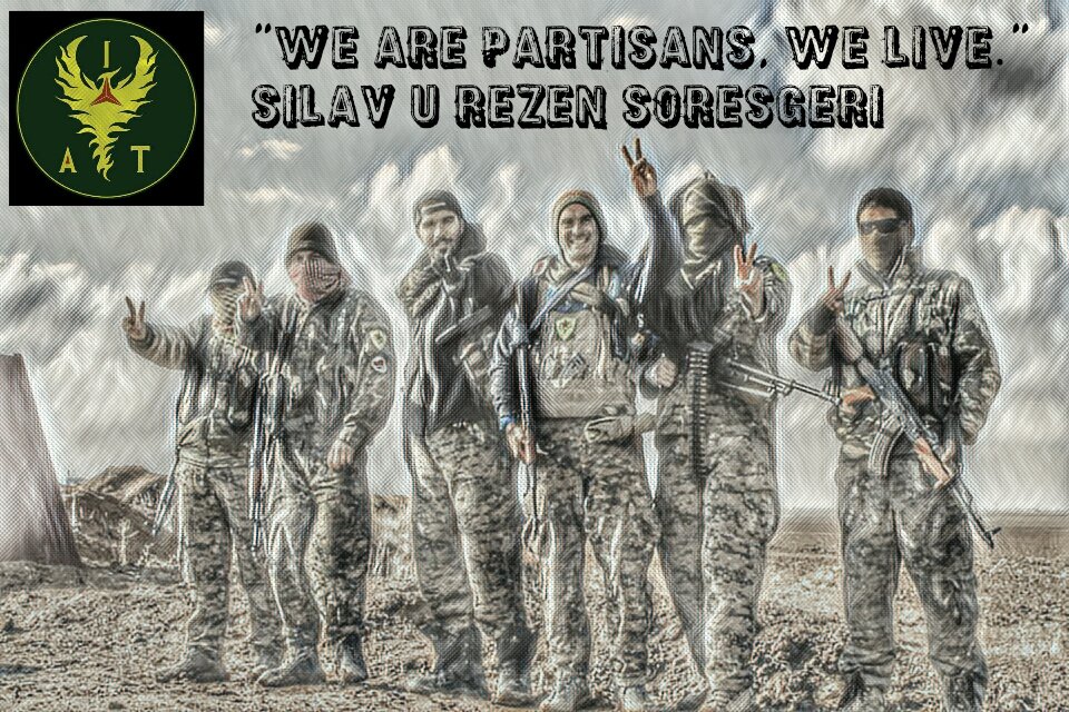 Each comrade, here, now, fights for the light, with the living memory of the previous partisan struggles, for a better world, that have reached these ardent lands. So, with the name of our unit, we want to remember Comrade Martyr Ivana Hoffman, who courageously fought against ISIS on the Tell Tamir front in March 2015. Together we fight to defend those values that we hold in our hearts. We take our symbol of the revolutionaries who fought in Spain for a world without borders, without shadows and without fear. History did not defeat them. Their dreams did not die. Now they are reborn with us, with every comrade who now fights in Rojava. As a phoenix always rises from the ashes, so the fire of the Revolution will continue to burn forever. ”