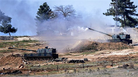 Turkey’s military shelling Kurdish areas in northern Syria. File photo