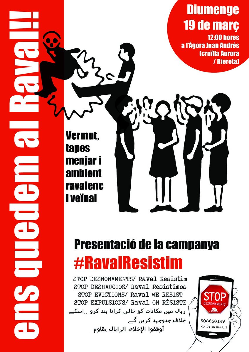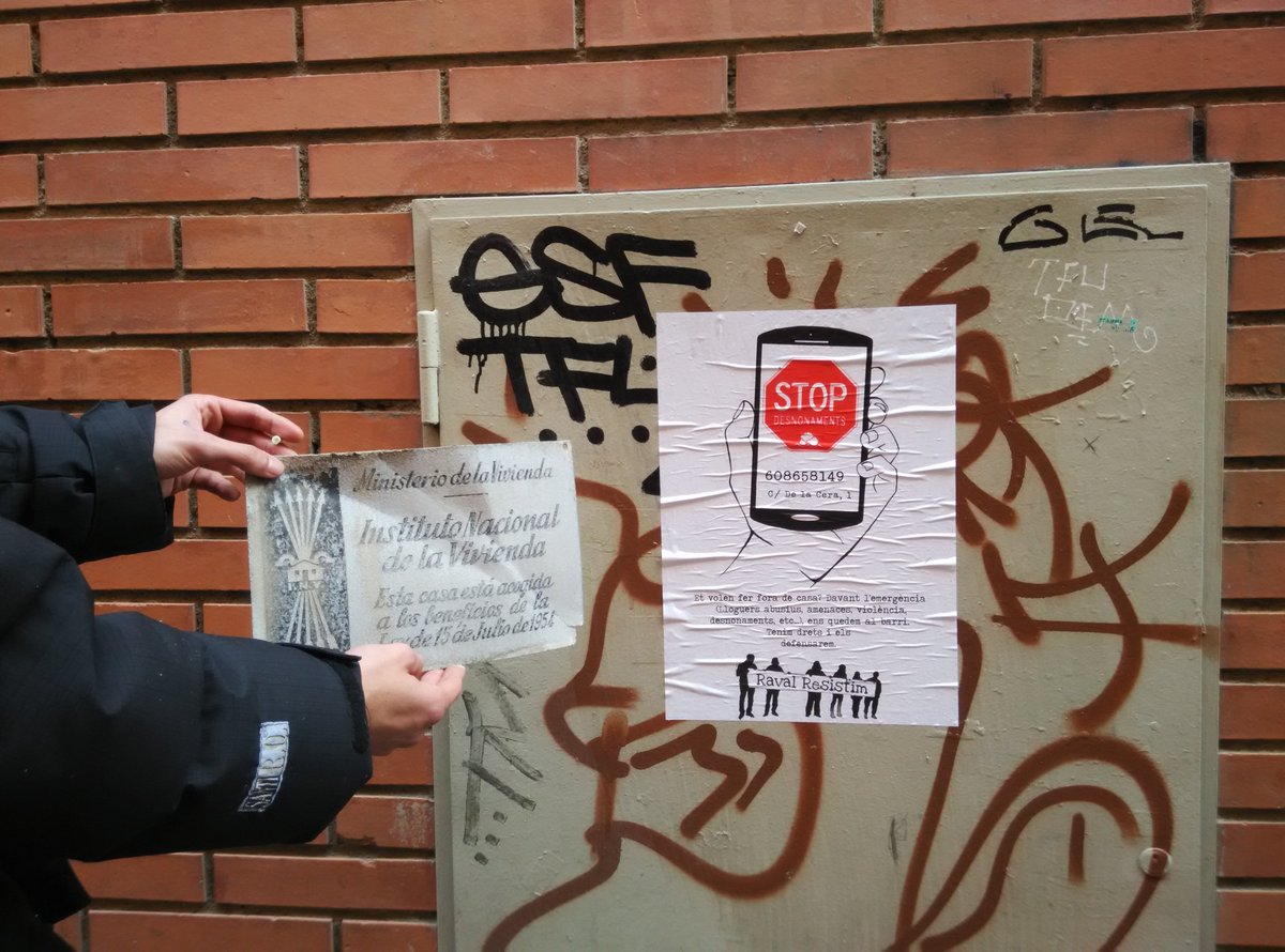 #Ravalresistim Stop evictions..the Raval barrio (Barcelona old city) opens a mutual support hotline. .. we’re living a situation of extreme urgency with weekly and often daily evictions, harassment and bullying, an exponential increase of speculative practices, and price rises that are covert expulsions of the population;