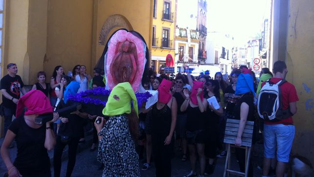 Carrying a gigantic pussy instead is seen as sacrilege by the far right Association of Christian Lawyers who demanded up to 4 years prison plus fines for presenting the Holy Mother of God as a giant vagina, and taking it in procession through the streets, and have taken a whole series of well financed cases against collectives promoting sexual freedom, workers rights, Basque autonomy, etc..Continue reading “Pussy Pride Parades resist Prosecution by Catholic Church”