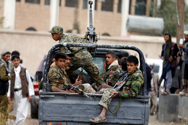 Houthi militants ride on the back of a patrol truck during a tribal gathering held to show support to the Houthi movement in Sanaa, Yemen November 10, 2016. REUTERS/Khaled Abdullah