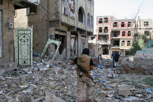 A pro-government fighter at the site of recent battles between Houthi fighters and pro-government fighters, on the second day of a 48-hour ceasefire in the southwestern city of Taiz, Yemen November 20, 2016. REUTERS/Anees Mahyoub