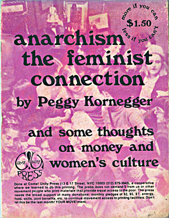 “the objection which anarchists have always sustained to fixed and authoritarian forms of organisation does not mean that they deny organisation as such. The anarchist is not an individualist in the extreme sense of the word. He believes passionately in individual freedom, but he also recognises that such freedom can only be safeguarded by a willingness to co-operate by the reality of community”Read Download click  here..  Anarchism: The Feminist Connection. by Peggy Kornegger