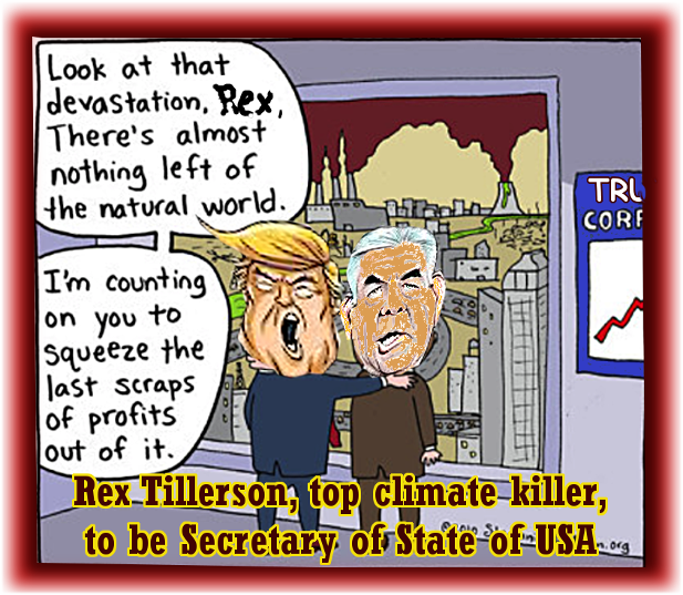 Like Rex Tillerson. His hundreds of millions in offshore accounts won’t be compromised, his mansions won’t be affected by ‘fracking blight’,  he will cry crocodile tears with his friend Donald.                      see footnote 4