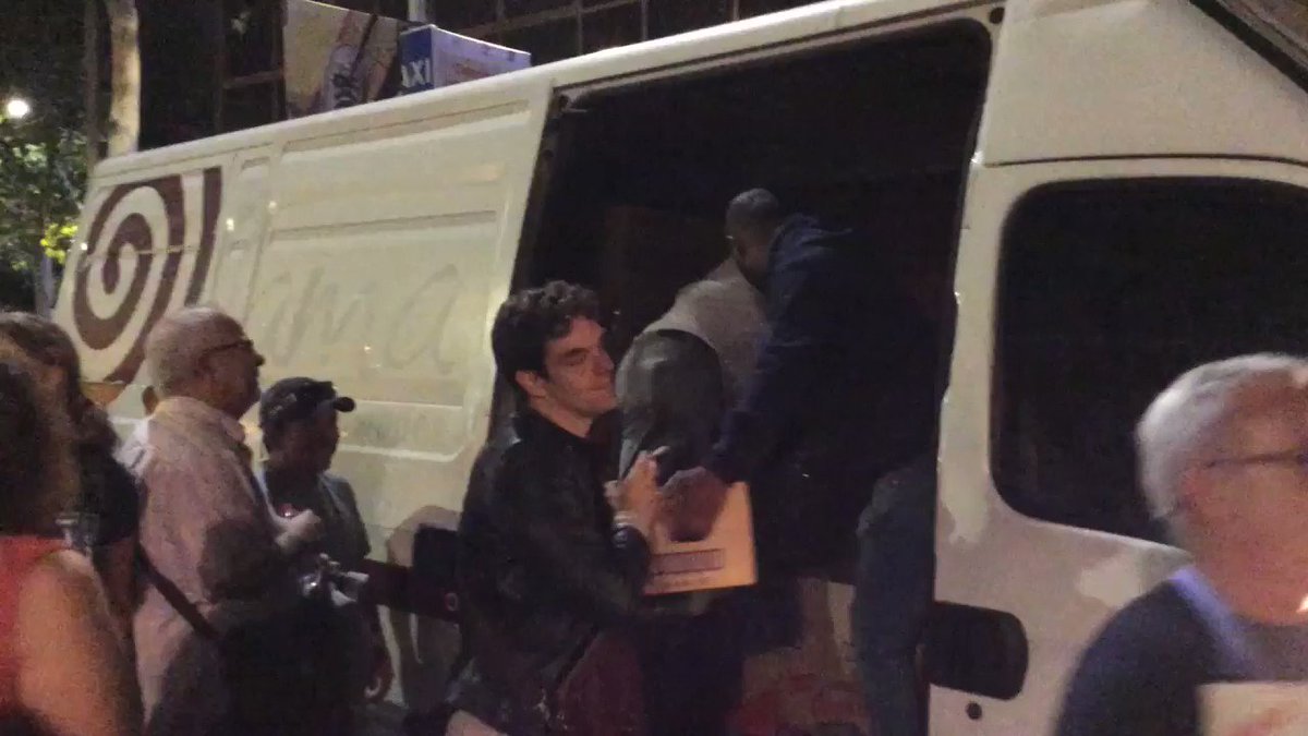 In Consell de Cent, a private van distributes food and water