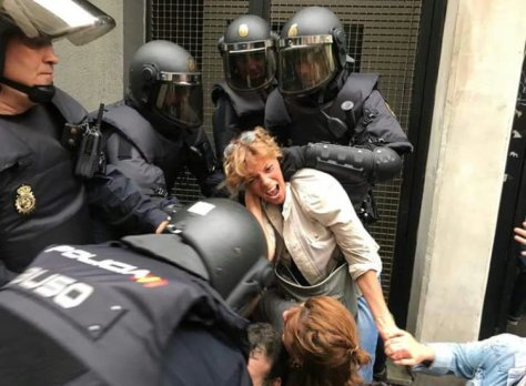 THIS IS WHAT THE SPANISH POLICE ARE DOING AGAINST PEACEFUL CATALAN PROTESTERS THAT WANT TO VOTE #CatalanReferendum