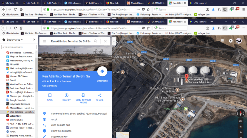 Você pode acompanhar os movimentos de petroleiros de GNL carregados com o Fracking Gas em vários sites da Internet que são parcialmente gratuitos, como o – VesselFinder ou o Marine Traffic