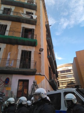 The eviction ​​began at around eight in the morning. First, with the arrival of agents to deliver the eviction order. Minutes later, the Guàrdia Urbana de Barcelona deployed their riot police against the group of people who sat in front of the building to support the thirty people resisting inside. During the morning, the city police evicted the occupants, who have been identified.