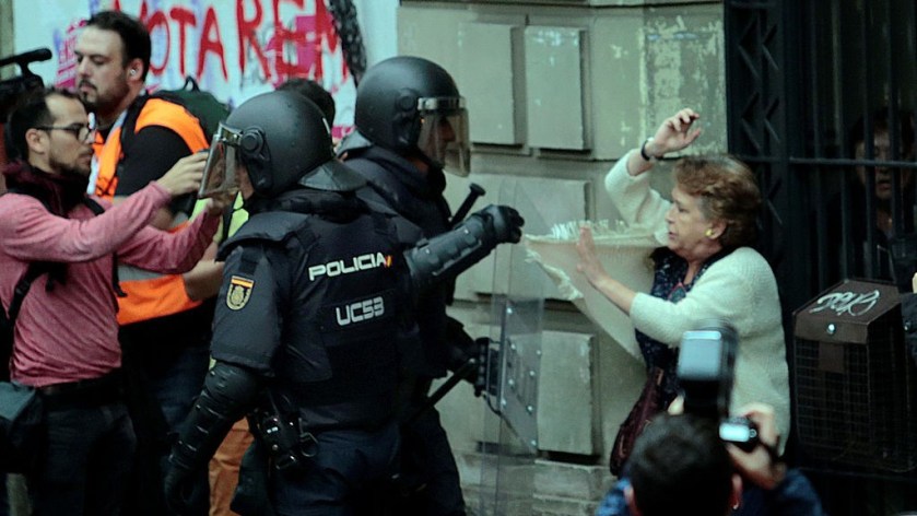 L’1 d’octubre, entre diversos càntics, hi havia el de “sense les iaies, no hi ha revolució”. Aquests crits ressonaven mentre les forces policials del Cos Nacional de Policia (CNP) i de la Guàrdia Civil entraven a les seus electorals per impedir les votacions durant el referèndum català. Durant la jornada, la repressió es va universalitzar i va saltar de la creació de “l’enemic intern” a petita escala a extrapolar-lo a tota la població catalana mobilitzada en defensa del referèndum.