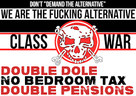 “Class War is a far-left, pro-anarchy, UK-based pseudo-political party, originally borne out of a newspaper established in 1982. The group opposes the ‘ruling elite’ for their exploitation of the poor and the disadvantaged and have recently been involved with campaigns against the demolition of social housing in London to make way for the construction of luxury housing, as well as campaigns against inequality and austerity. Class War vocally supports, and engages in, civil disobedience, violence and anarchy as acceptable methods of pursuing their objectives.”